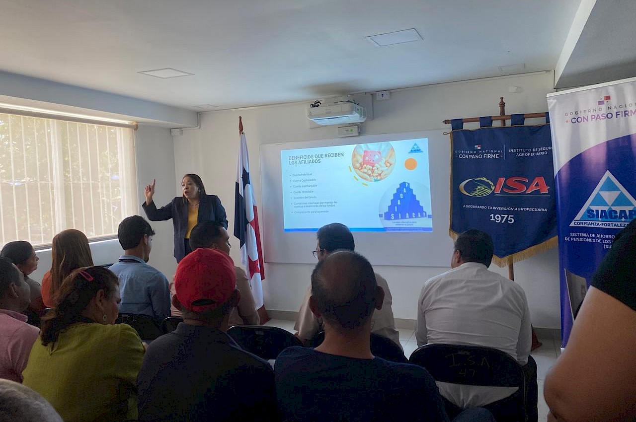 Más de 25 colaboradores del Instituto de Seguro Agropecuario participaron en el Seminario “Los beneficios del Sistema de Ahorro y de Pensiones de los Servidores Públicos (SIACAP)”, con el propósito de fortalecer sus conocimientos sobre el sistema de ahorro previsional, dictado por Mirna Guillen.