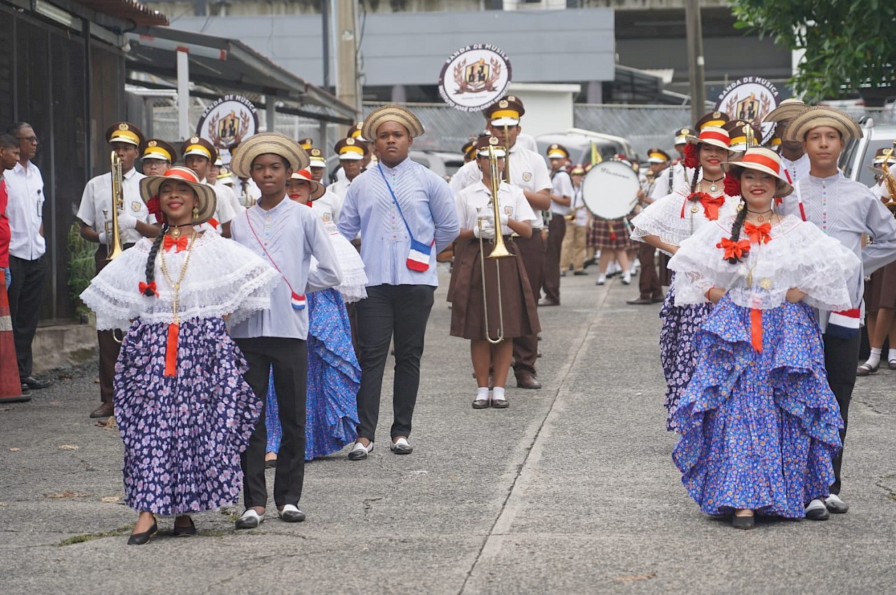 La ceremonia incluyó la presentación de la banda de música de los colegios José Dolores Moscote y San Vicente de Paúl, la izada del pabellón nacional y diversas presentaciones artísticas.