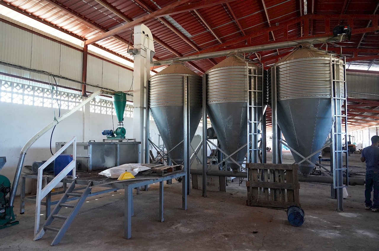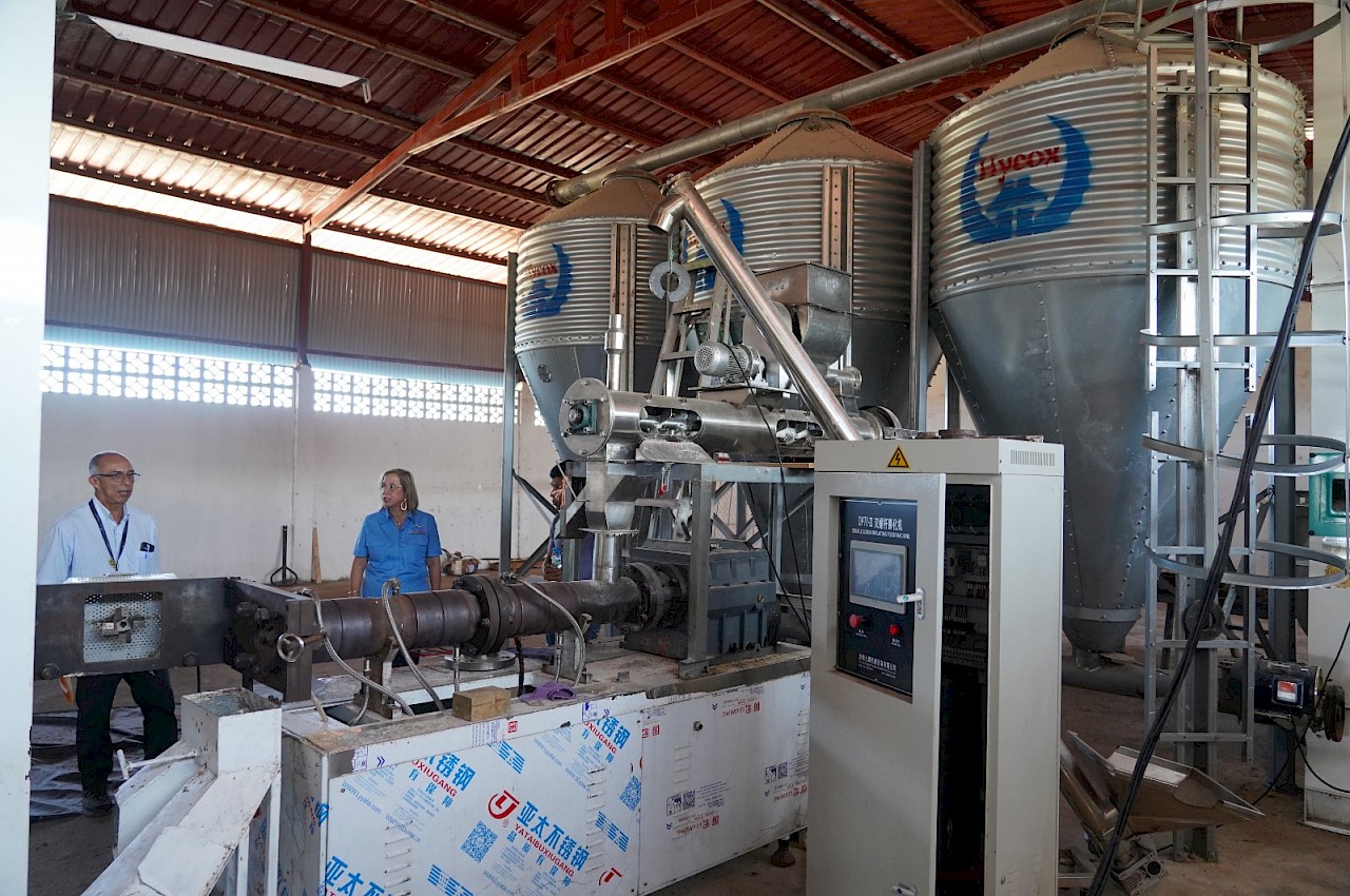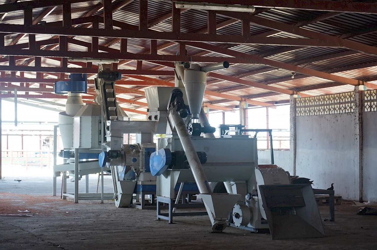 La planta, que aún no se encuentra en funcionamiento, tiene como proyección la producción de alimentos destinados a la alimentación de cerdos, tilapias y ganado bovino.