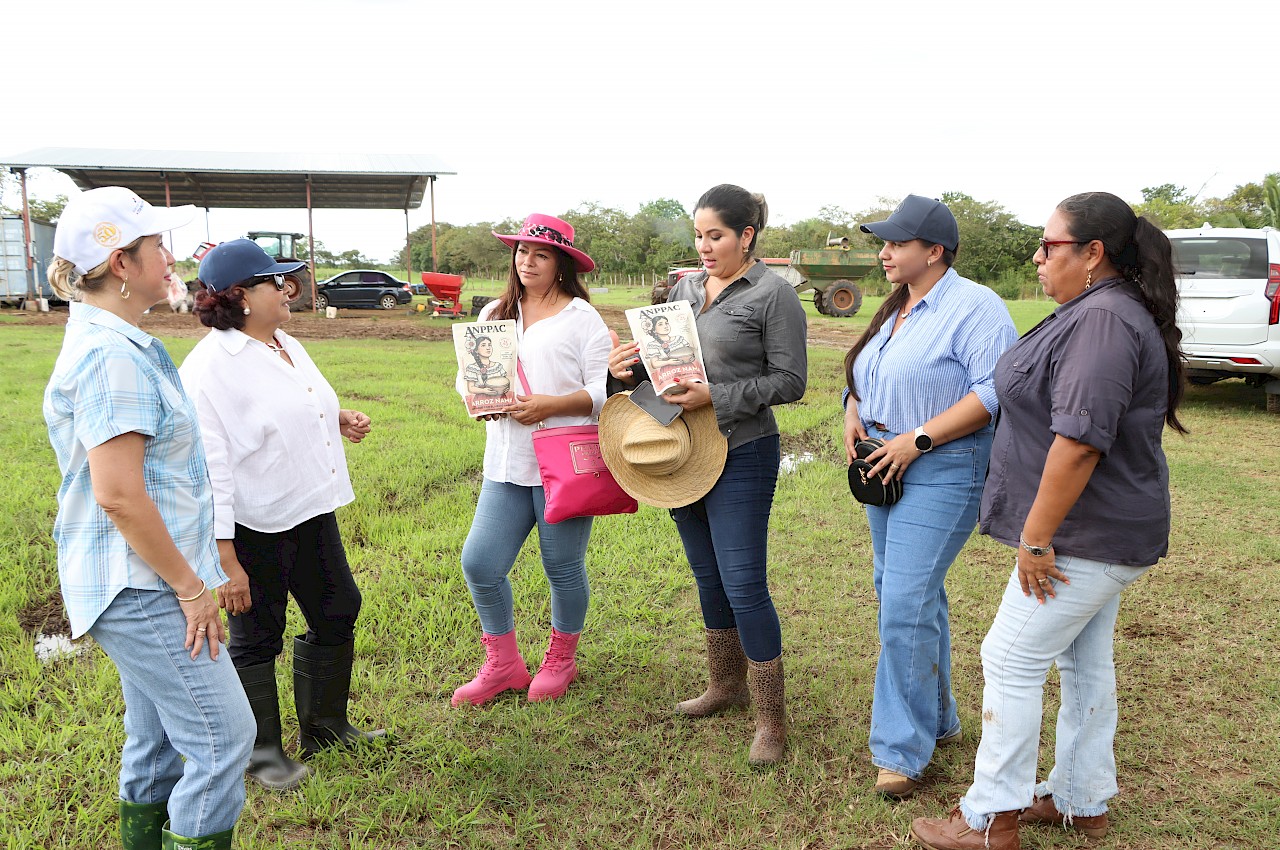 La subgerente general del ISA, Nilka de Arellano, y la presidenta de ANPPAC, Karen González, primero recorrieron una parcela de arroz ubicada en la comunidad de Guayaquil, propiedad de la productora Silvia González; y la segunda, con el mismo rubro, de la productora Gilma Núñez, que se localiza en la comunidad de Pueblo Nuevo, distrito de Santiago.